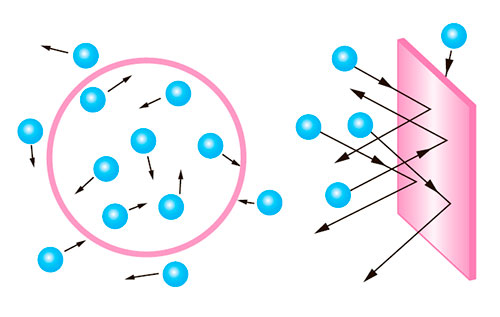Гази створюють тиск на всі внутрішні поверхні посудини внаслідок численних ударів об ці поверхні частинок газу. Тиск газу зростає в разі зростання густини або температури газу і зменшується в разі зменшення густини або температури газу.