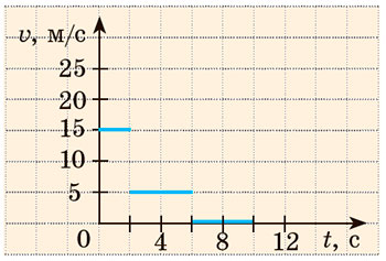 5. Розгляньте графік швидкості руху тіла (рисунок) і дізнайтесь: а) як рухалось тіло; б) якою була швидкість руху тіла на кожній ділянці; в) який шлях подолало тіло. Побудуйте графік шляху цього тіла.