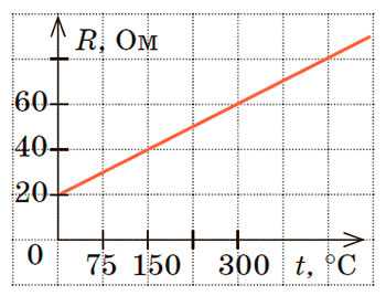 3. На рисунку подано графік залежності опору металевого провідника від температури. Яким є температурний коефіцієнт опору цього металу? Яка сила струму в провіднику за температури 150 °С, якщо напруга на кінцях провідника 5 В?