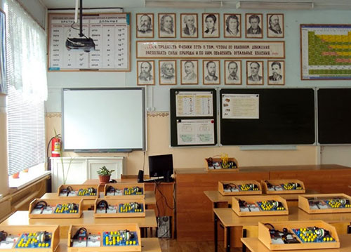 Який має бути кабінет фізики? Звичайно, мати достатню кількість приладів та наочностей для повноцінного навчального процесу. Має містити все обладнання в достатній кількості для виконання повноцінних лабораторних та практичних робіт з учнями. Має містити усю нормативно-правову базу. Але, крім того, він має зачаровувати та надихати. Учень має хотіти вчитися. А також, давати підказки для дітей на уроці зі своїх плакатів та замальовок. Розглянемо приклади кабінетів фізики, як в межах спеціалізованих міських шкіл, так і під дахом звичайних сільських навчальних закладів. Можливо, якась з фото надихне вчителя фізики до нового шедевру оформлення класної кімнати.