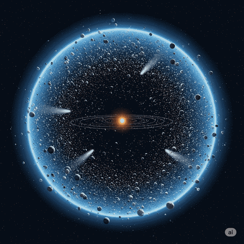 Хмара Оорта Має сферичну форму та складається здебільшого з крижаних об’єктів утворених з води, аміаку та метану. Вона розташована приблизно на відстані від 2 000 до 100 000 астрономічних одиниць (а.о.) від Сонця. (1 а.о. = відстань від Землі до Сонця). Вважається, що хмара утворилася з уламків, які залишились після формування Сонячної системи й були викинуті на периферію під дією гравітації Юпітера, Сатурна та інших планет.`